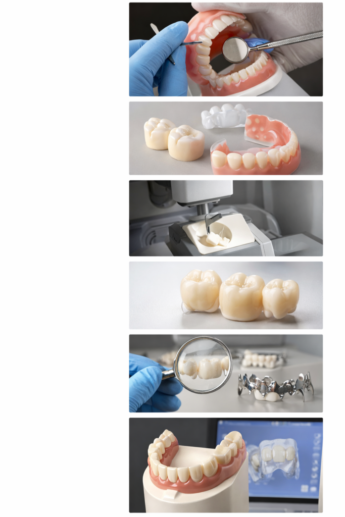A well-structured process using advanced technology to create high-quality dental restorations.